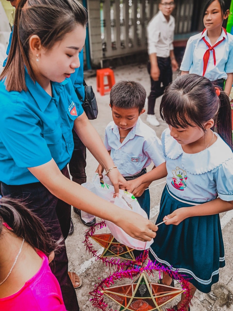 Tại đây, đoàn thiện nguyện trường Đại học Phan Thiết đã tiến hành trao tặng 100 phần quà bao gồm bánh trung thu, lồng đèn, bánh kẹo và sữa cho các em học sinh có hoàn cảnh gia đình khó khăn. Với những món quà nhỏ nhưng chan chứa tình yêu thương, tập thể Khoa Quản trị Kinh doanh và Khoa Công nghệ Thông tin mong rằng các em thiếu nhi tại phường Phú Hài, thành phố Phan Thiết sẽ có một đêm hội trăng rằm đầy niềm vui với những kỷ niệm đáng nhớ.