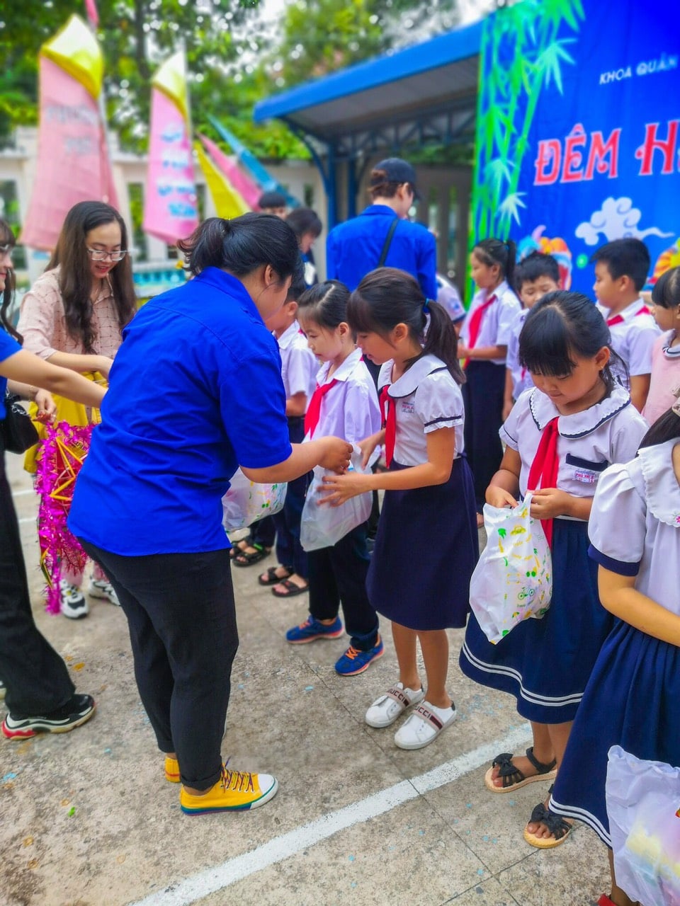 Tại đây, đoàn thiện nguyện trường Đại học Phan Thiết đã tiến hành trao tặng 100 phần quà bao gồm bánh trung thu, lồng đèn, bánh kẹo và sữa cho các em học sinh có hoàn cảnh gia đình khó khăn. Với những món quà nhỏ nhưng chan chứa tình yêu thương, tập thể Khoa Quản trị Kinh doanh và Khoa Công nghệ Thông tin mong rằng các em thiếu nhi tại phường Phú Hài, thành phố Phan Thiết sẽ có một đêm hội trăng rằm đầy niềm vui với những kỷ niệm đáng nhớ.