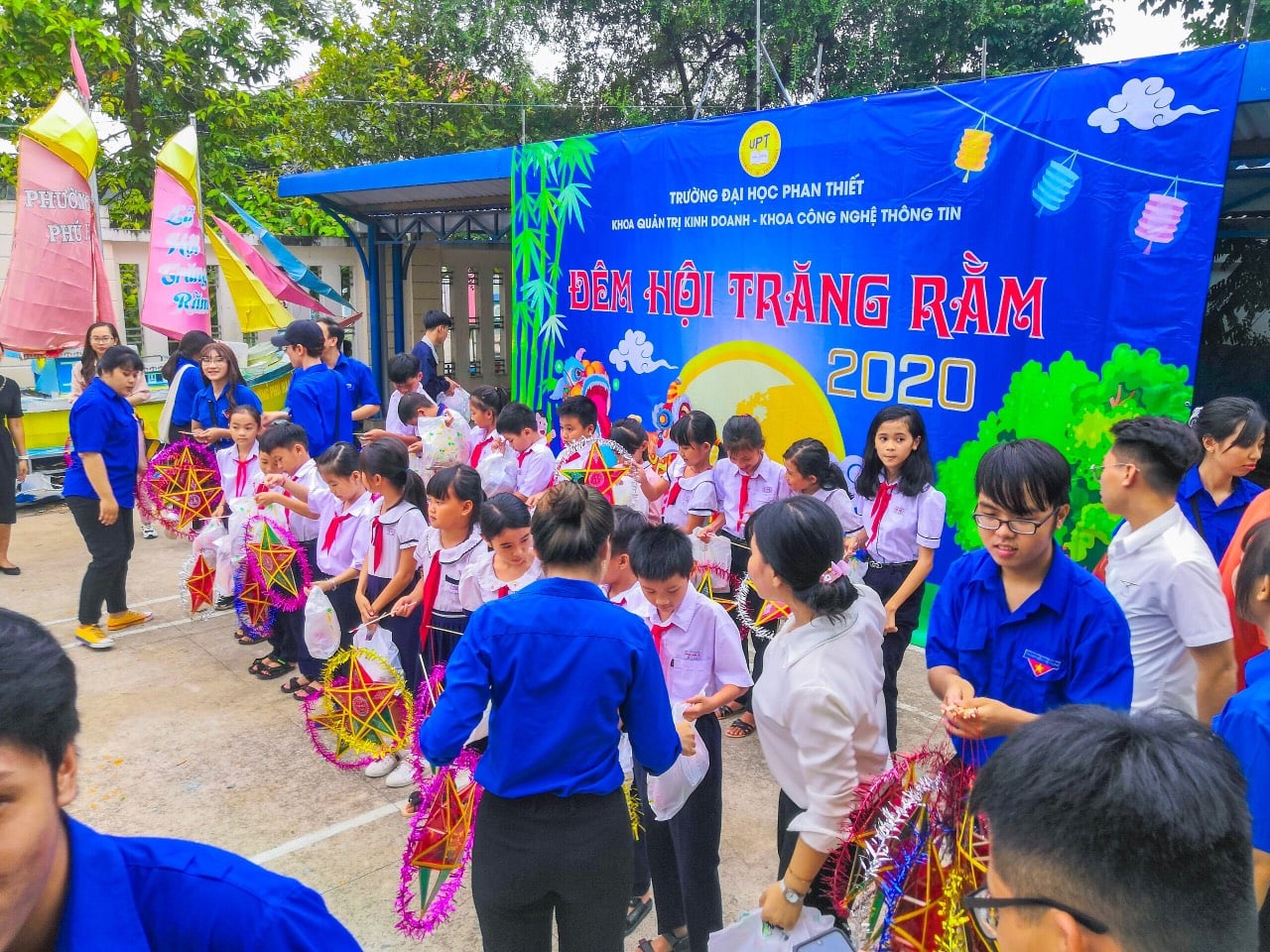 Chiều ngày 27/9/2020, tập thể các bạn sinh viên cùng toàn thể cán bộ, nhân viên, giảng viên Khoa Quản trị Kinh doanh và Khoa Công nghệ Thông tin trường Đại học Phan Thiết đã có mặt tại Uỷ ban Nhân dân phường Phú Hài để tiến hành tổ chức chương trình “Đêm Hội Trăng Rằm” cho các em học sinh trường Mẫu giáo Phú Hài, trường Tiểu học Phú Hài 1, trường Tiểu học Phú Hài 2 và trường THCS Nguyễn Thông.