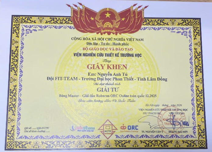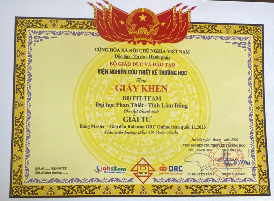 Giấy khen cho đội và các thành viên đạt giải