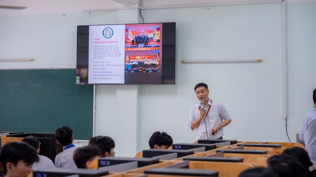 Ngày 29/11/2025, tập thể Thầy Cô tổ Tin học và các em học sinh yêu thích Công nghệ Thông tin của Trường THPT Hàm Thuận Bắc đã có chuyến tham quan đầy ý nghĩa tại Khoa Công nghệ Thông Tin – Trường Đại học Phan Thiết (UPT). Các em đã tham gia nhiều hoạt động trải nghiệm công nghệ.