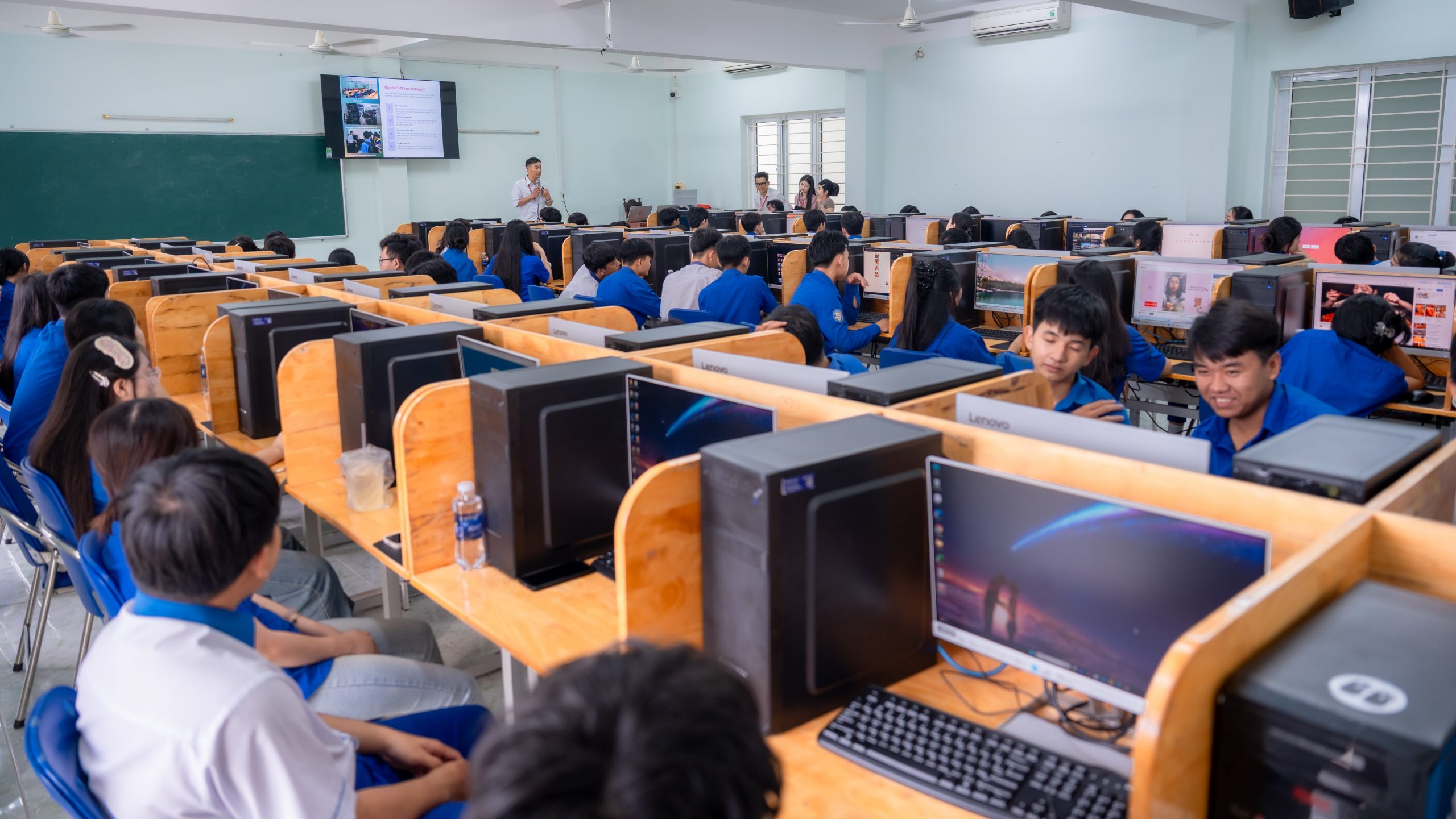Học sinh trải nghiệm phòng máy tính hiện đại, tìm hiểu công nghệ mới đang được sử dụng tại UPT
