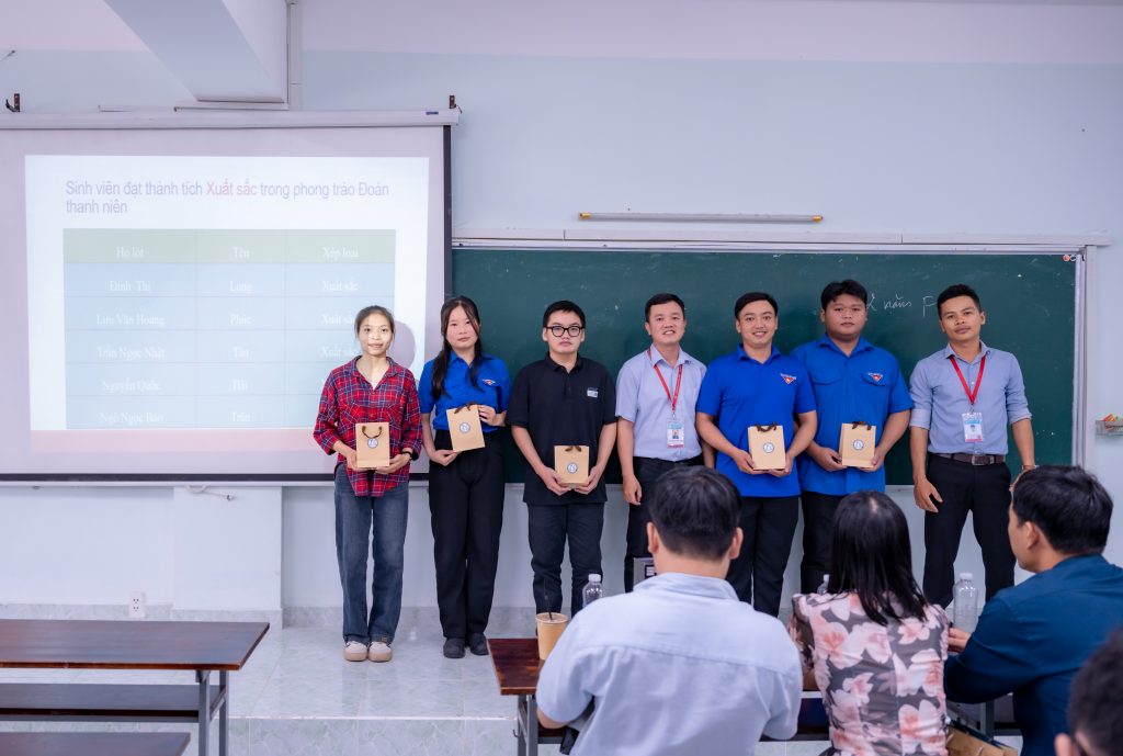 ThS. Huỳnh Ngọc Tuấn, ThS. Nguyễn Hữu Tiến tặng quà cho các đoàn viên thanh niên xuất sắc trong hoạt động phong trào
