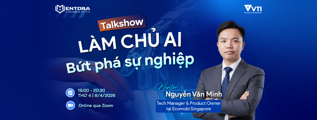 Một sự kiện do VTI Academy tổ chức và Mentora – Hệ sinh thái kết nối học tập và đào tạo thực chiến cùng các Mentor đầu ngành trực thuộc tập đoàn VTI. Đây chính là nơi dành riêng các bạn sinh viên mong muốn kết nối với mạng lưới chuyên gia chất lượng, nâng cao kỹ năng và trải nghiệm thực chiến tại doanh nghiệp.