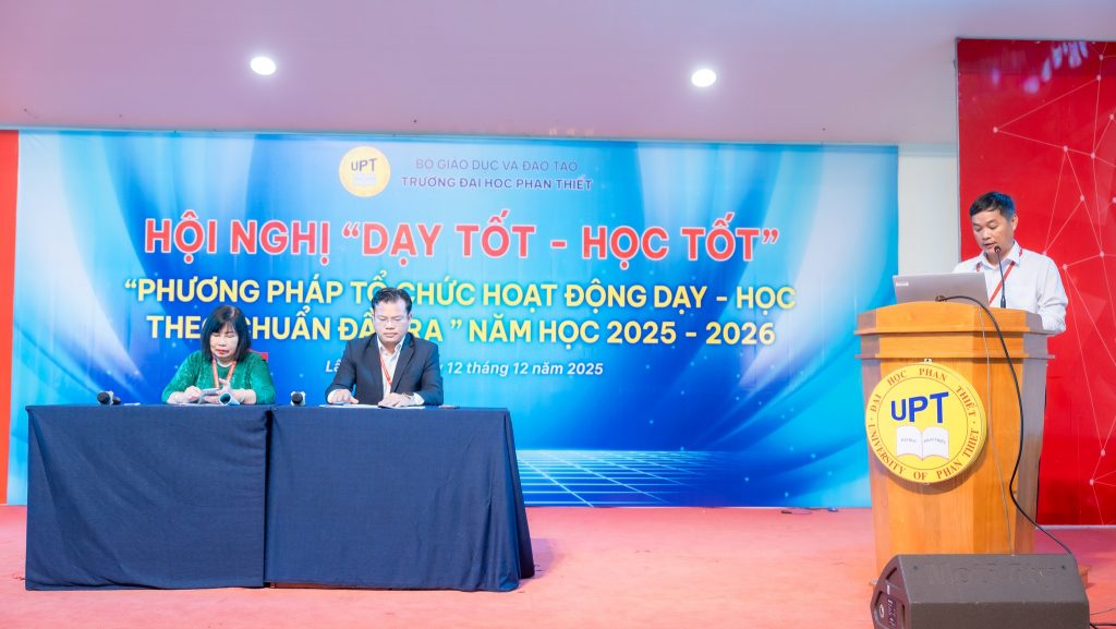 Nhằm nâng cao chất lượng dạy và học, khuyến khích giảng viên và sinh viên sáng tạo, tự học, nâng cao chuyên môn, sáng ngày 12/12/2025, Trường Đại học Phan Thiết đã long trọng tổ chức Hội nghị “Dạy tốt – Học tốt” và “Phương pháp tổ chức hoạt động dạy – học theo chuẩn đầu ra” năm học 2025–2026.