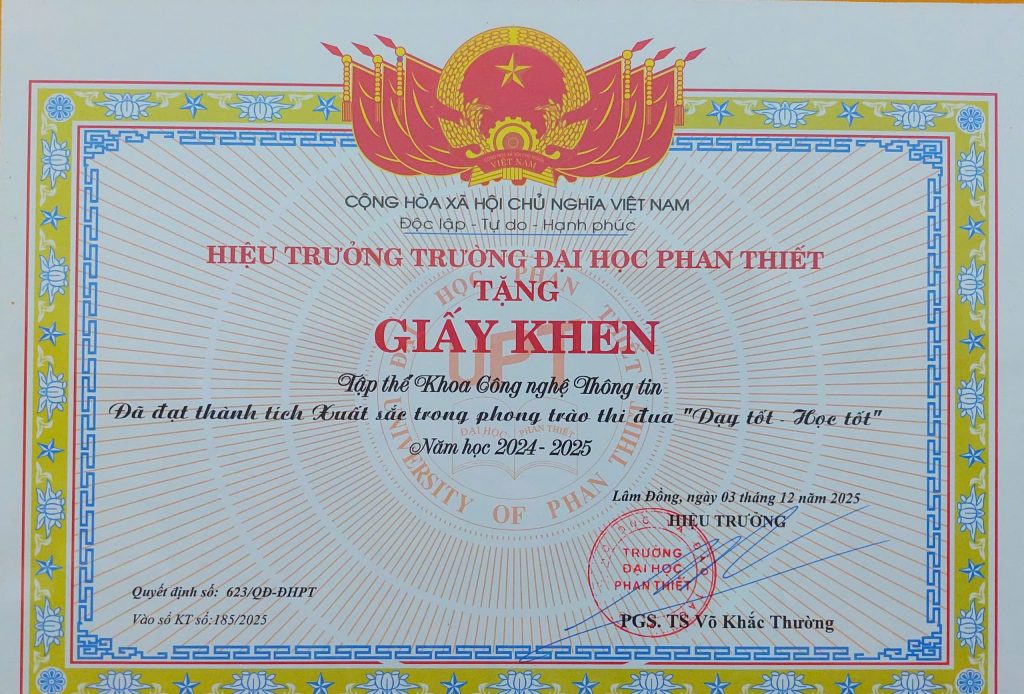 Chúc mừng tập thể, các cá nhân Khoa Công nghệ Thông tin đạt thành tích xuất sắc trong phong trào thi đua “Dạy tốt – Học tốt” năm học 2024 – 2025.