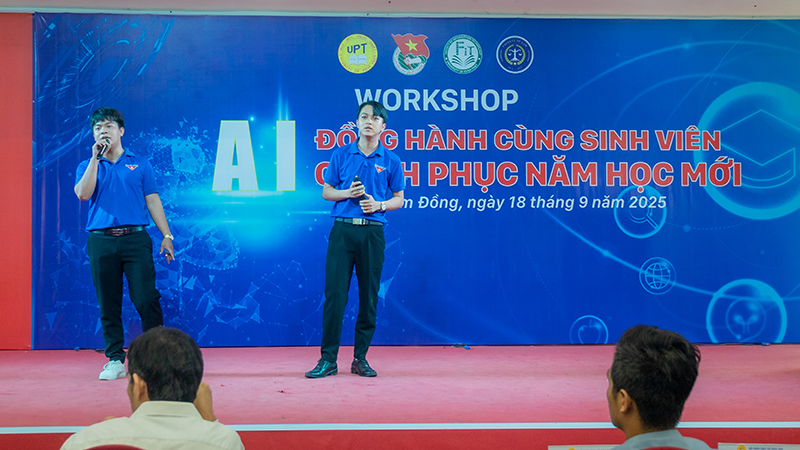 Nhằm giúp tân sinh viên chinh phục năm học mới đầy tự tin và hiệu quả, vừa qua ngày 18/9/2025, tại hội trường Trường Đại học Phan Thiết, Khoa Công nghệ Thông tin phối hợp Khoa Luật Kinh tế – Trường Đại học Phan Thiết tổ chức buổi Workshop với chủ đề “AI – Đồng hành cùng sinh viên chinh phục năm học mới”.
